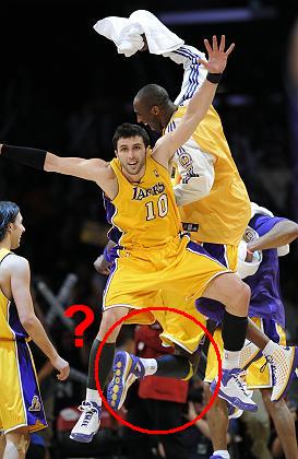 Ich musste auch ein paar Minuten grübeln, aber es ist eine Vierte Person im Bild, die durch die vorderen beiden fast verdeckt wird. Außer dem Unterschenkel guckt links noch eine Hand raus.