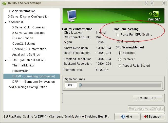 Edit: Könnte es sein, dass GPU Scaling nur verfügbar ist, wenn der Monitor über DVI angeschlossen ist, nicht aber über VGA?